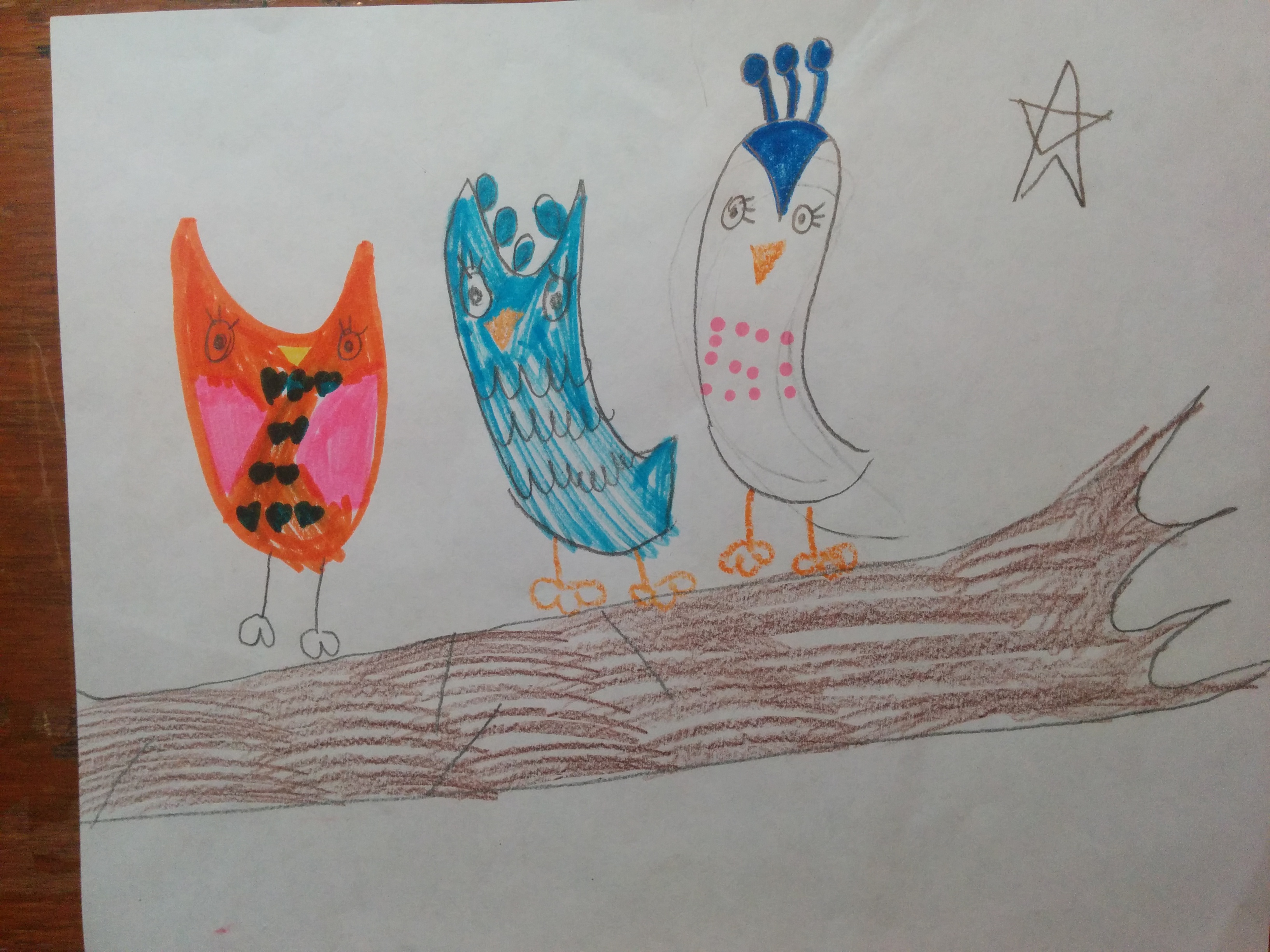 This is a picture of three sweet owls and at my school I copied my friend Sierra’s shirt and made this picture.