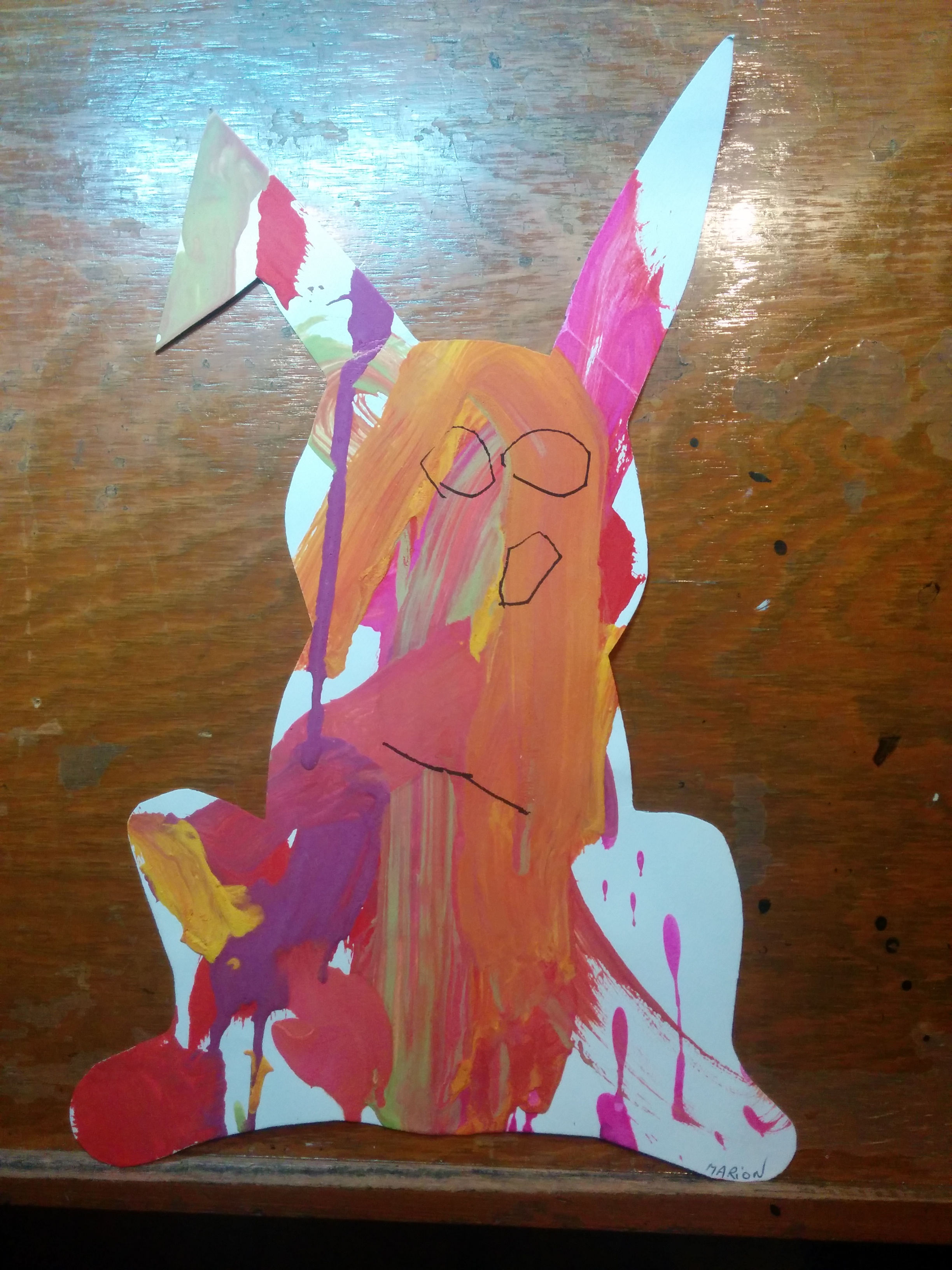 The Fall Bunny is called the Fall Bunny because I painted it with Fall colors like orange, yellow, red, pink, green, and purple.